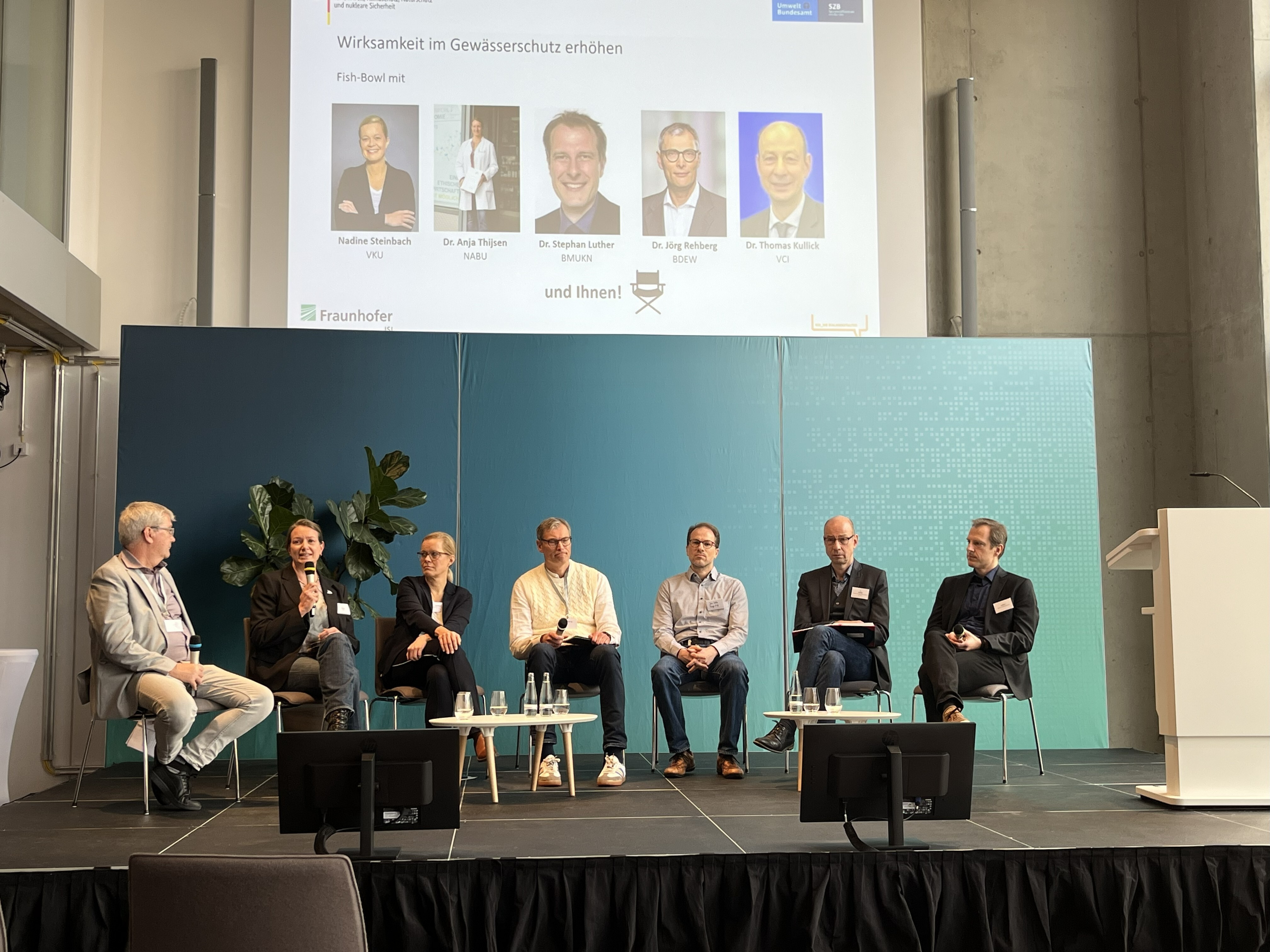 Das zweitägige Programm bot ein breites Spektrum an Beiträgen aus Forschung, Behörden und Praxis. Vertreterinnen und Vertreter des Umweltbundesamts, des Bundesministeriums für Umwelt, des BMUKN, der Europäischen Kommission, verschiedener Fraunhofer-Institute, der Bundesanstalt für Gewässerkunde, des TZW sowie weiterer Institutionen beleuchteten industrielle Spurenstoffeinträge, Herausforderungen für die Trinkwasserversorgung, neue Bewertungsansätze für Abbaubarkeit und aktuelle Initiativen wie die „Modellkommunen Spurenstoffe“. Gesprächsinseln, eine große Fachausstellung, interaktive Formate sowie Pecha-Kucha-Beiträge zu innovativen Lösungswegen rundeten das Programm ab.